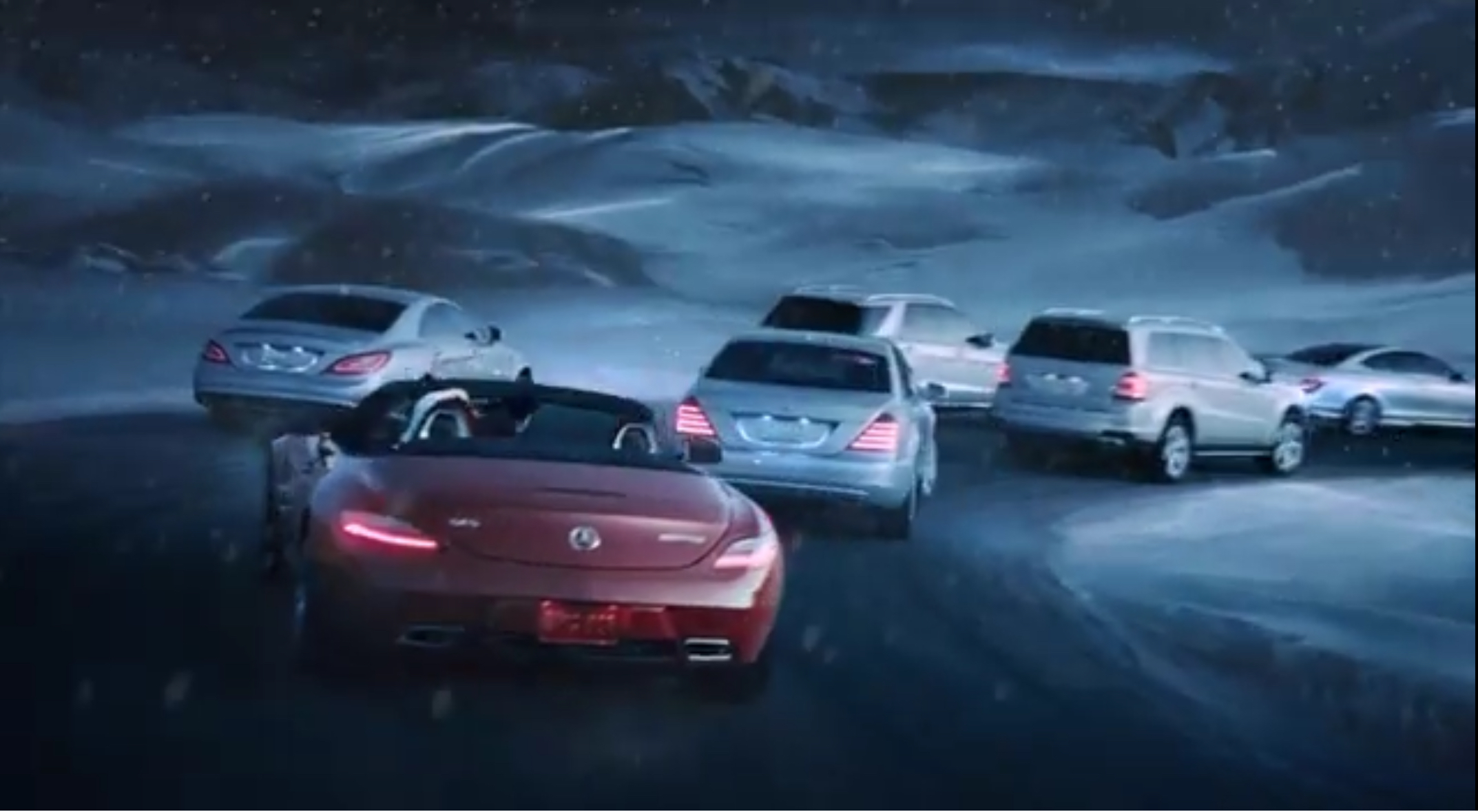 벤츠는 크리스마스에 어울리는 빨간 벤츠 스포츠카와 순록을 연상시키는 하얀색 SUV 조합을 10년 넘게 지속 이어오고 있다.