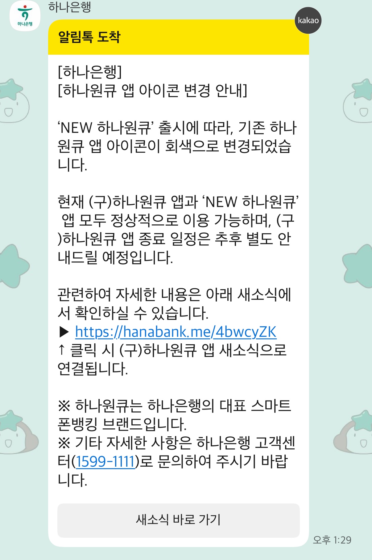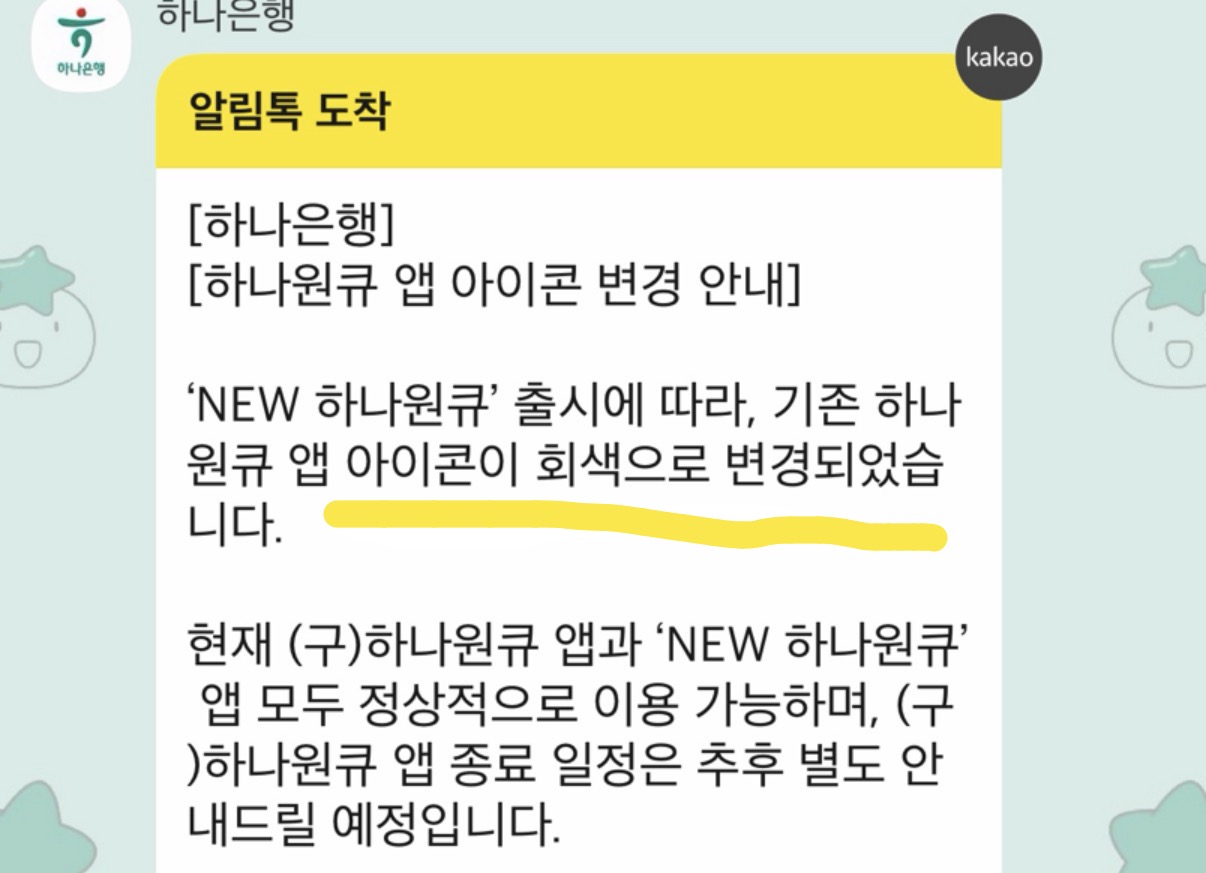 어제 하나은행으로부터 카카오톡 채널 문자를 받았다.
